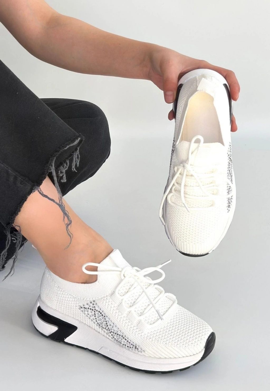 Belan Beyaz Triko Bağcıklı Spor Ayakkabı