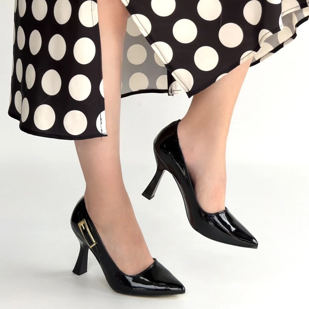 • Cerin Siyah Rugan Topuklu Ayakkabı