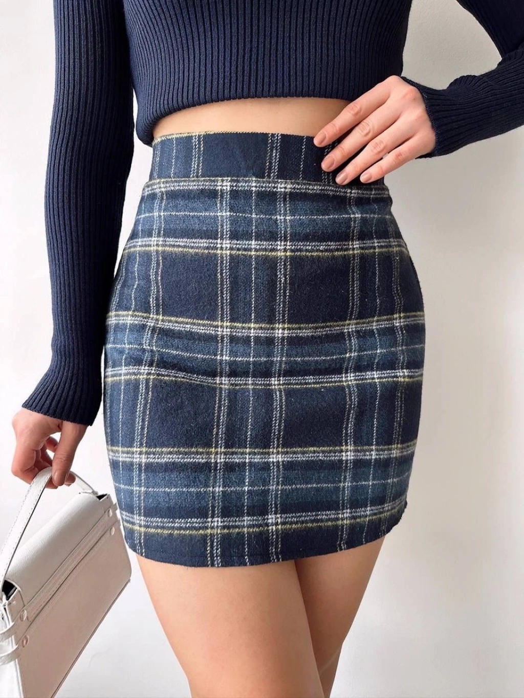 Ekoseli kaşe etek lacivert renk seçeneği ile tarzınızı tamamlayacak şık bir parçadır. Sağlam ve kaliteli kumaşı sayesinde uzun süre boyunca kullanabilirsiniz. İster günlük hayatta isterseniz özel davetlerde rahatlıkla tercih edebilirsiniz.
