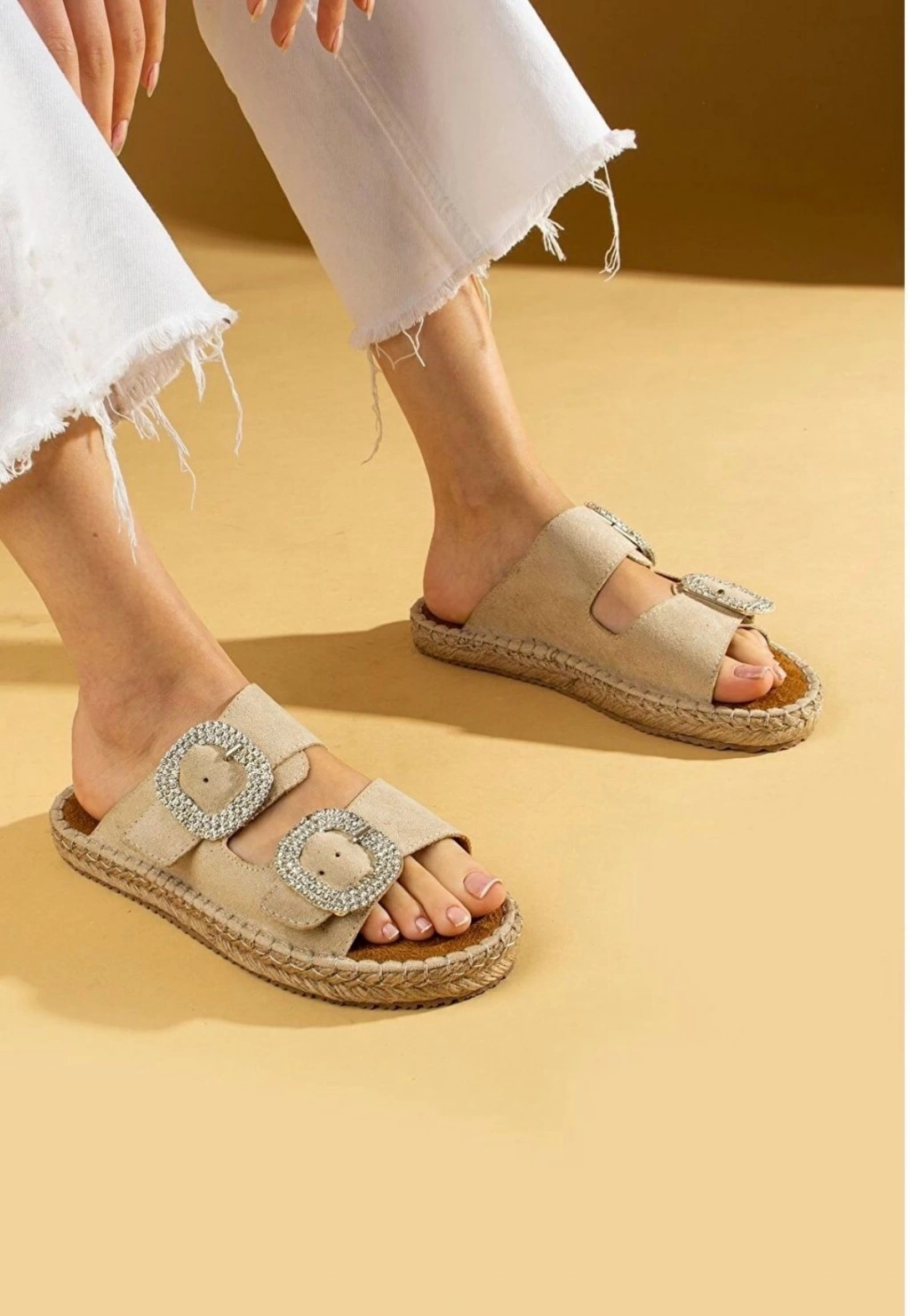 • Hertas Bej Nubuk Tokalı Terlik