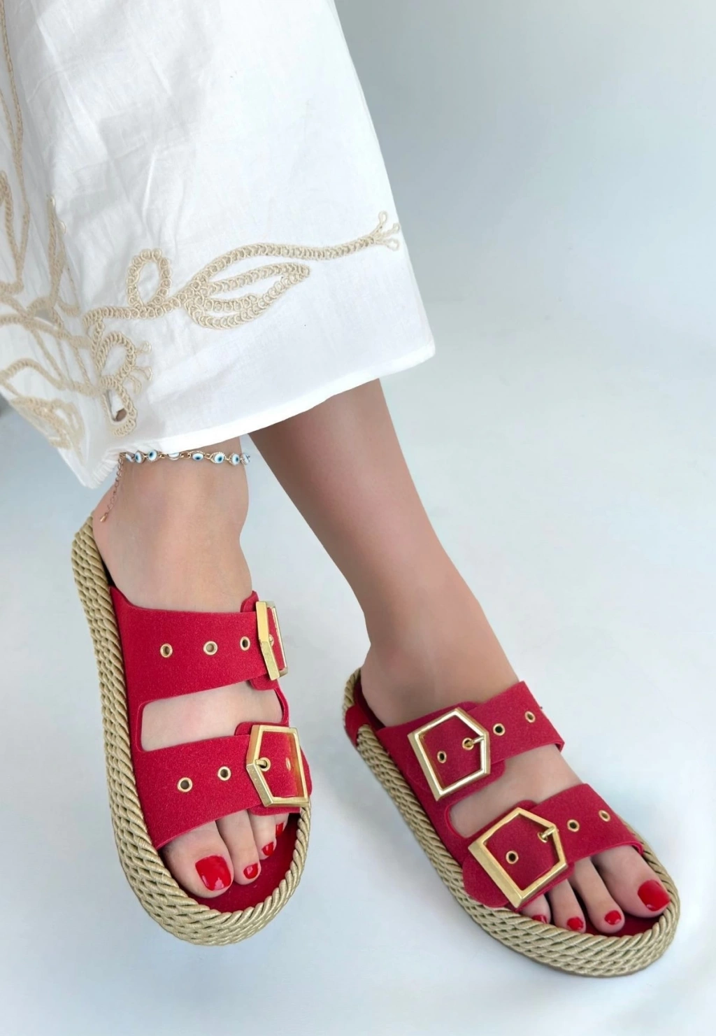 • İces Kırmızı Nubuk Terlik