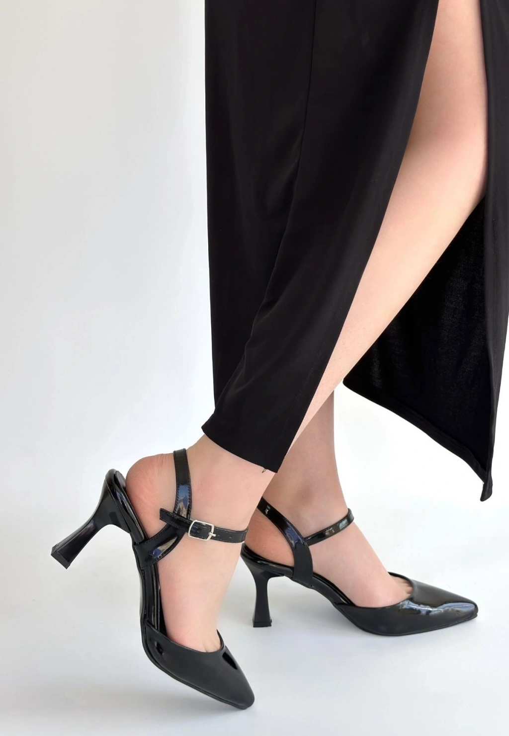 Suden Siyah Rugan Topuklu Ayakkabı
