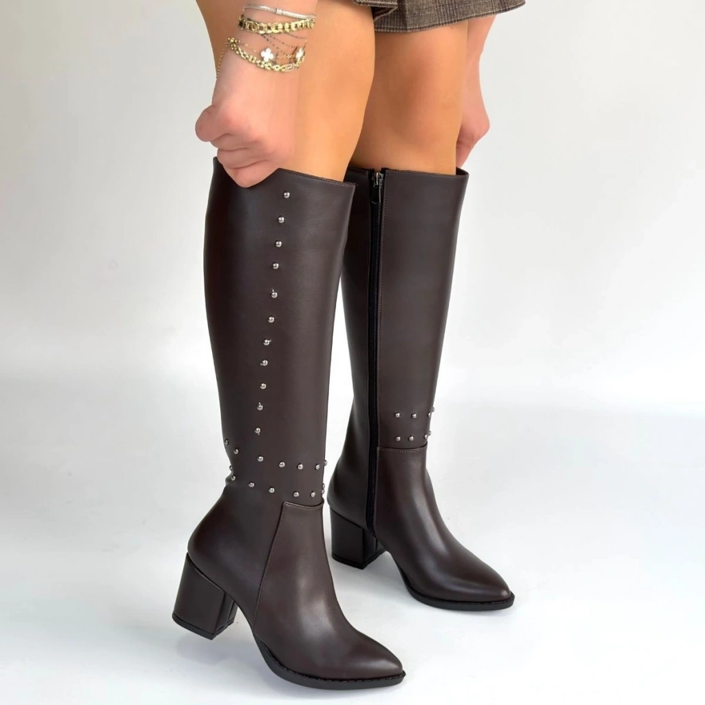 Detay: Topuklu Diz Altı Yandan Fermuarlı Çizme